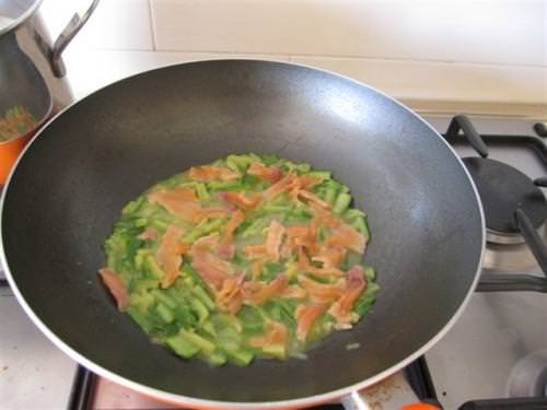 Aggiungere il salmone tagliato a listarelle e mescolare delicatamente, quindi aggiustare di sale e pepe.