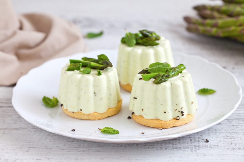 Budini di formaggio fresco e asparagi